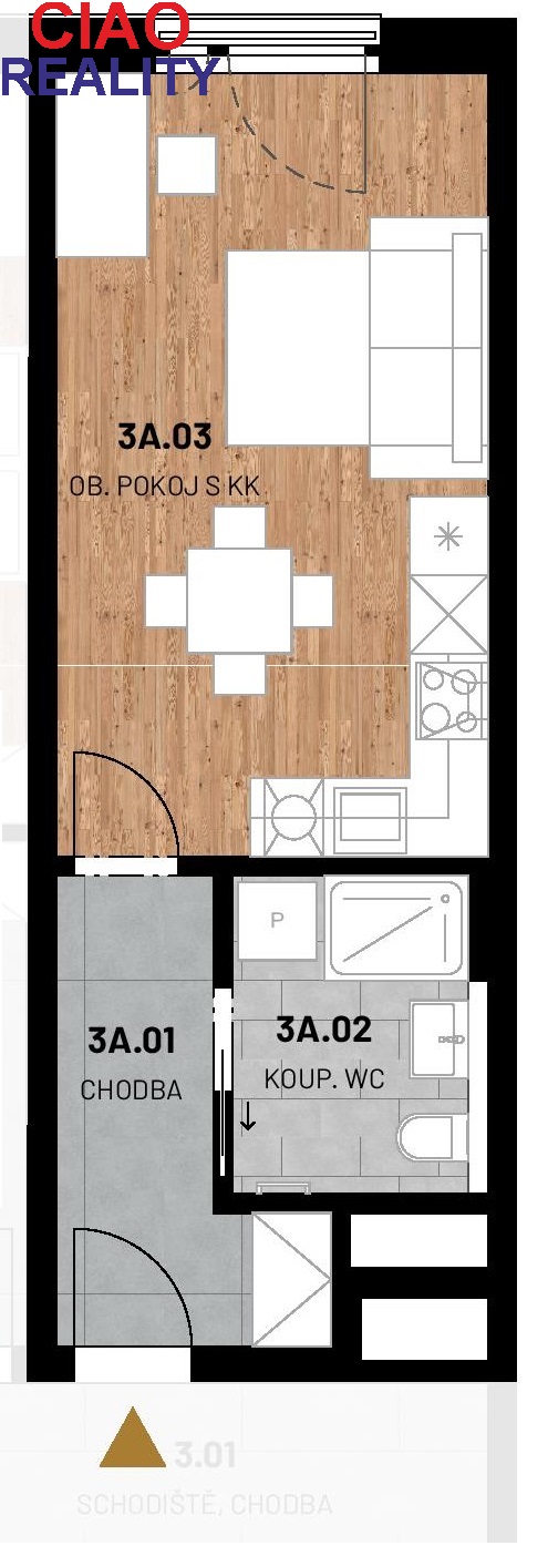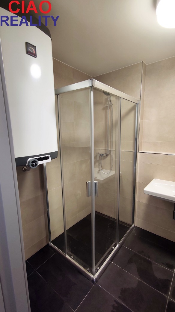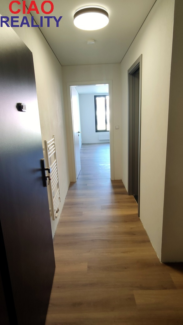 Byt ve třetím nadzemním podlaží přístupný také pomocí výtahu má okno situované na severní stranu směrem na parkoviště. Bytové okno s izolačním trojsklem, plnoprobarvený rám v barvě antracit. Vstupní protipožární dveře bytu s bezpečnostní vložkou v provedení matný antracit. Kování jednobodové bezpečnostní. Klíč na kódovou kartu. Kuchyňská linka s indukční varnou deskou, troubou a ledničkou s mrazákem, digestoř s podtlakovým odvětráním s podpůrným střešním ventilátorem. Ohřev teplé užitkové vody je z důvodu úspory řešen formou bojleru instalovaným přímo v bytě. Kvalitní vinylová podlaha v pokoji a chodbě v provedení bělený dub. Koupelna s WC s keramickým kalibrovaným obkladem 600/300 na celou světlou výšku v provedení slonová kost. Dlažba v totožném provedení. Podtlakové odvětrání ventilátorem zapuštěným v podhledu. Koupelnu oddělují od chodby posuvné dveře s matným proskleným okénkem. V bytě je podokenní deskový radiátor, na chodbě a v koupelně trubkové otopné těleso. Dodavatelem tepla k vytápění je Teplárna Strakonice. Datové rozvody v bytě pro připojení na internet a TV.