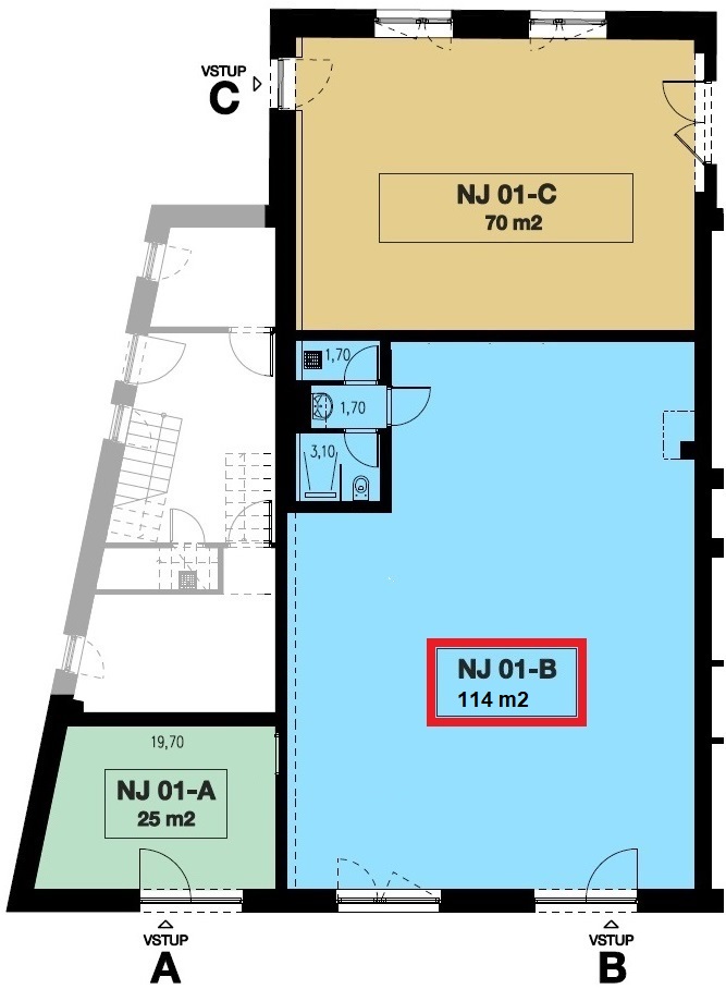 Nabízíme k pronájmu nebytový prostor č. NP 01 v 1. NP o celkové výměře 114 m2 v nově vybudovaném bytovém domě Bezděkovská 216 v centru města Strakonice. NP je pro klienty přístupný přímo z chodníku a je možnost jej přizpůsobit dispozičně pro konkrétního zájemce. Zásobování je možné ze zadní části objektu.